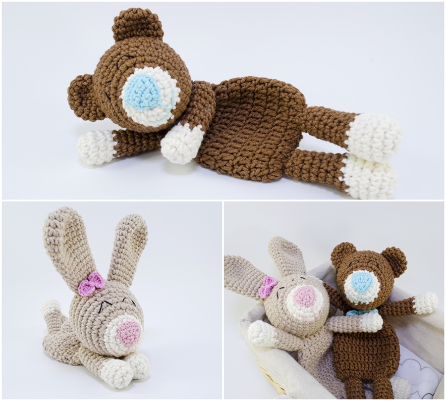 One crochet pattern but at the end you will have 2 cute baby snugglers – a teddy bear and a bunny.